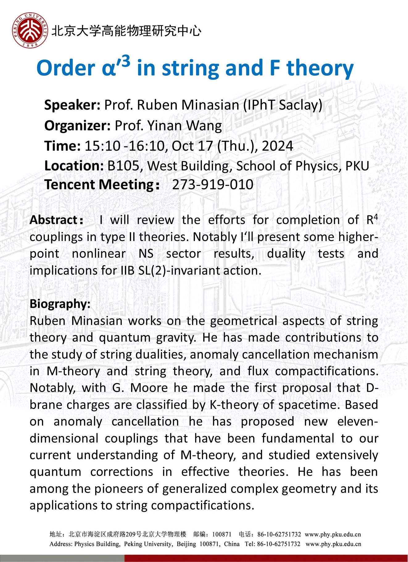 主讲人: Prof. Ruben Minasian (IPhT Saclay)