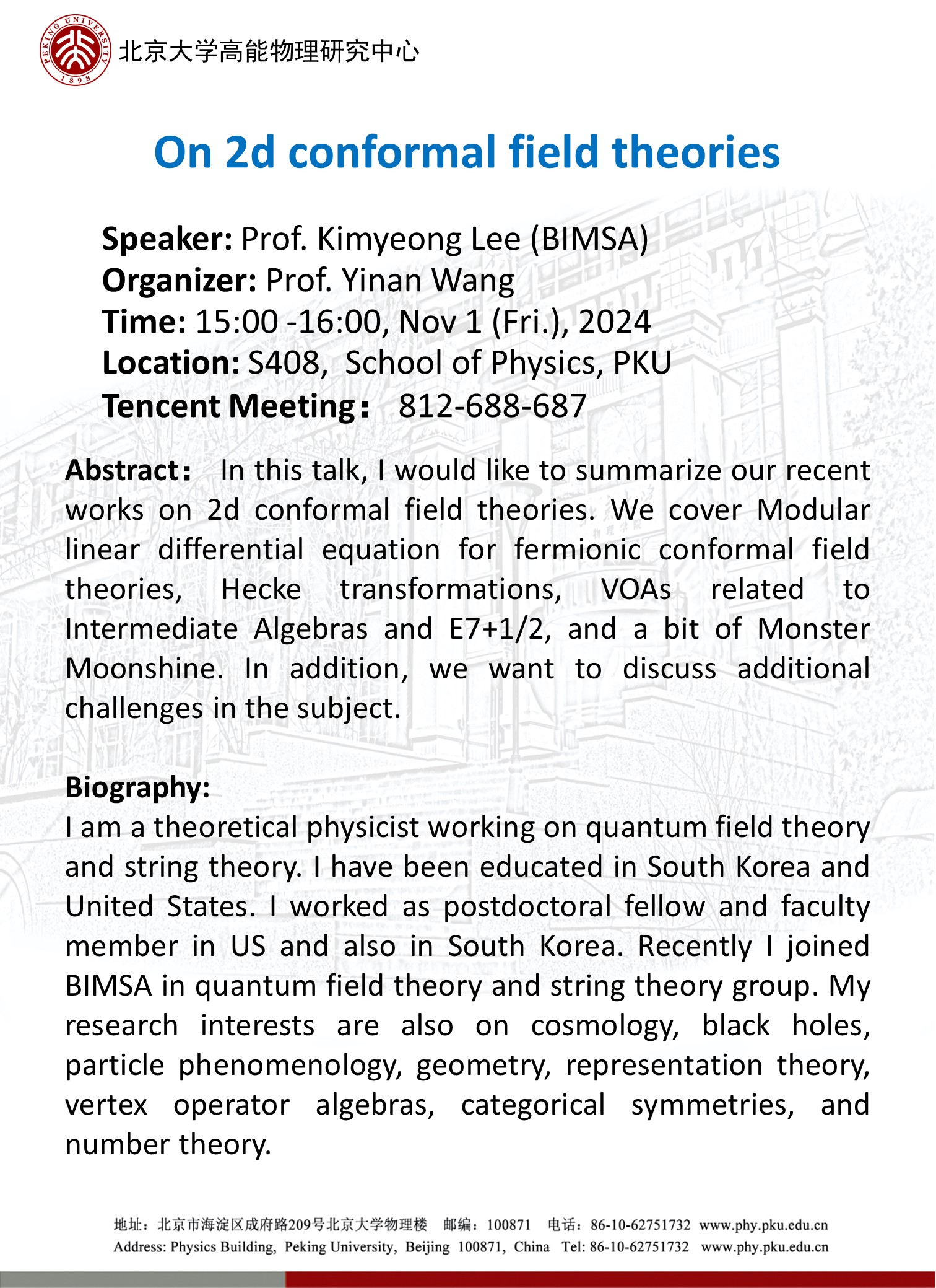 Prof. Kimyeong Lee (BIMSA)