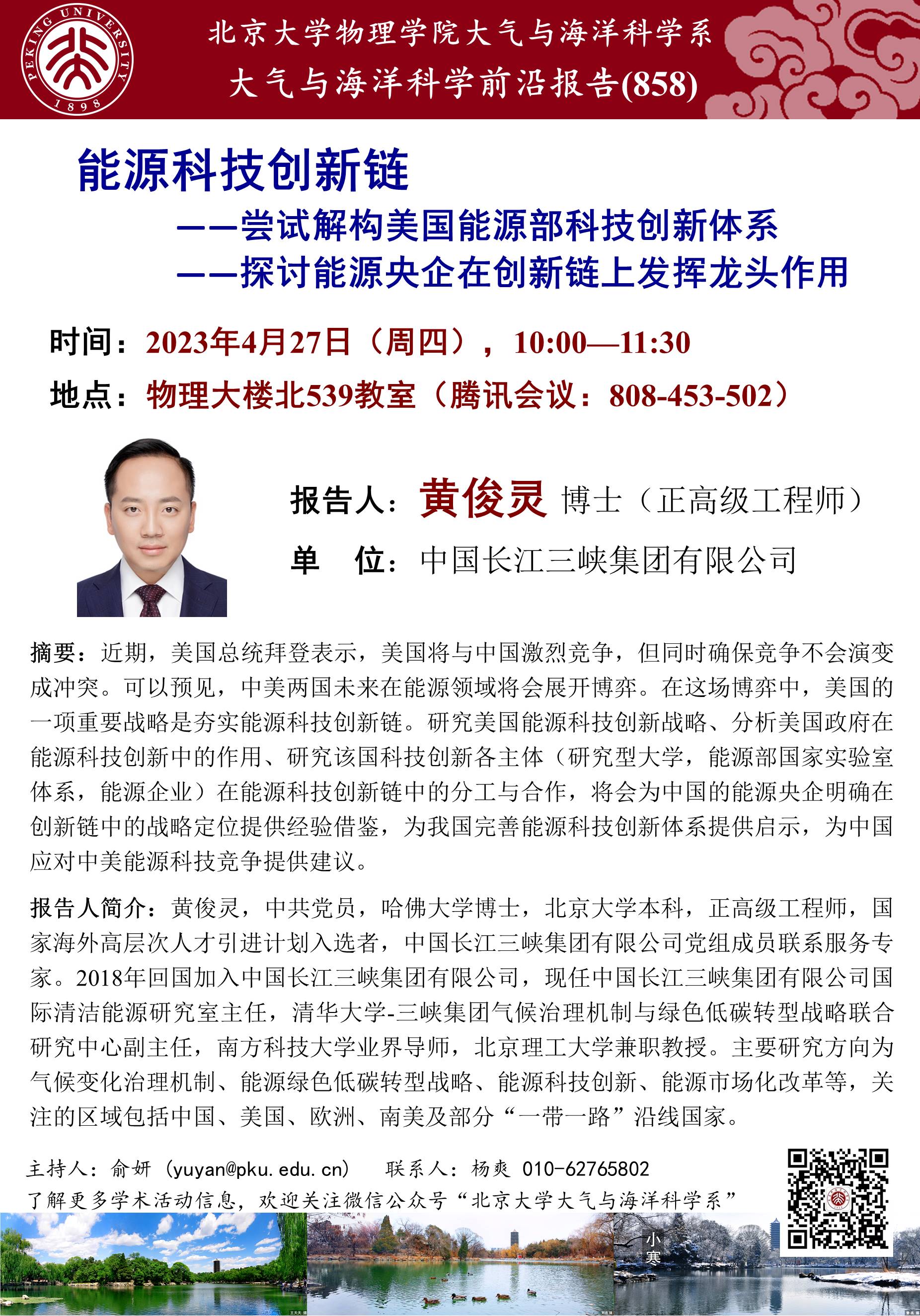 黄俊灵,中共党员,哈佛大学博士,欧冠官方网站本科,正高级工程师,国家海外高层次人才引进计划入选者,中国长江三峡集团有限公司党组成员联系服务专家。2018年回国加入中国长江三峡集团有限公司,现任中国长江三峡集团有限公司国际清洁能源研究室主任,清华大学-三峡集团气候治理机制与绿色低碳转型战略联合研究中心副主任,南方科技大学业界导师,北京理工大学兼职教授。主要研究方向为气候变化治理机制、能源绿色低碳转型战略、能源科技创新、能源市场化改革等,关注的区域包括中国、美国、欧洲、南美及部分“一带一路”沿线国家。