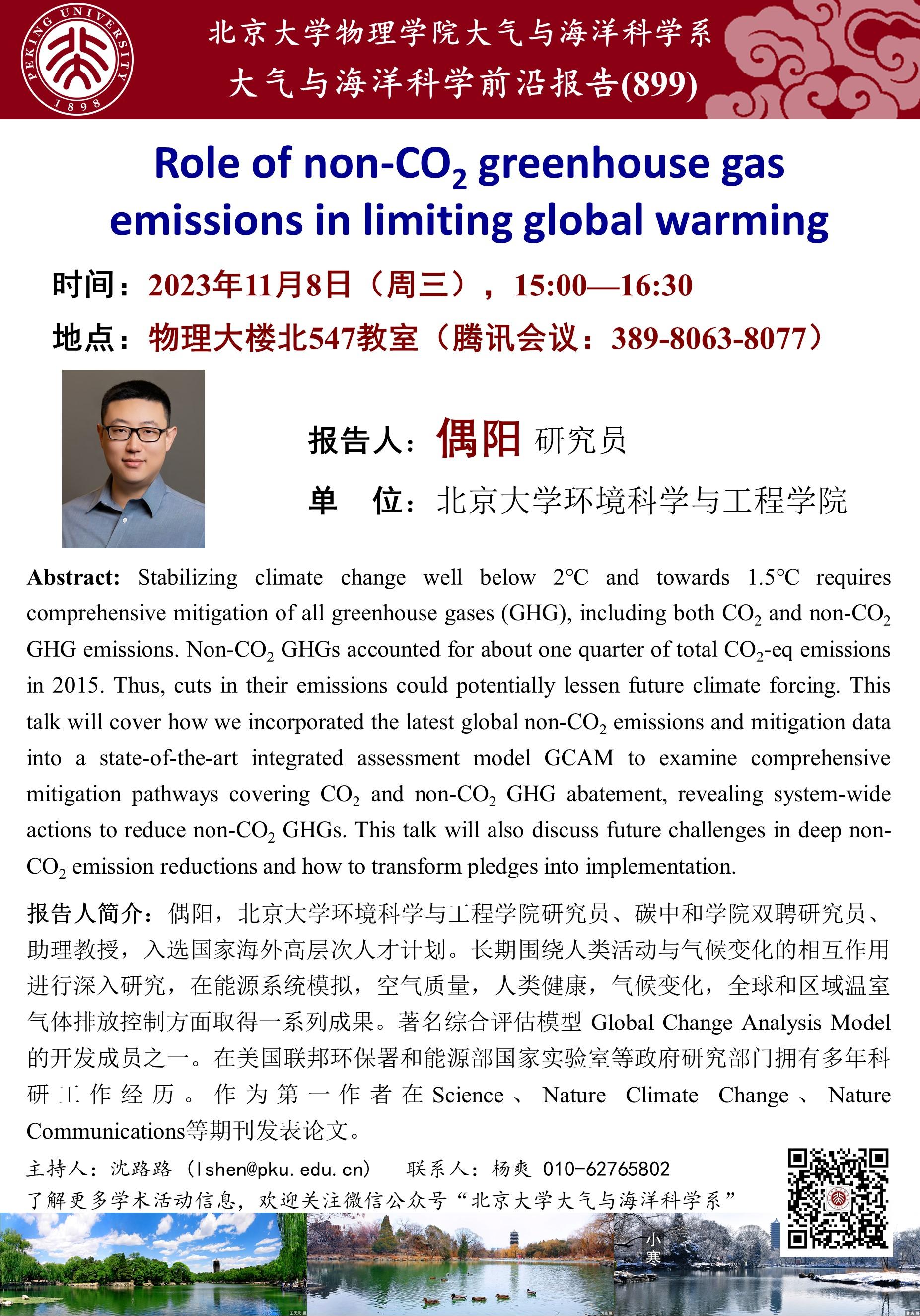 偶阳,欧冠官方网站环境科学与工程学院研究员、碳中和学院双聘研究员、 助理教授,入选国家海外高层次人才计划。长期围绕人类活动与气候变化的相互作用进行深入研究,在能源系统模拟,空气质量,人类健康,气候变化,全球和区域温室气体排放控制方面取得一系列成果。著名综合评估模型 Global Change Analysis Model 的开发成员之一。在美国联邦环保署和能源部国家实验室等政府研究部门拥有多年科研工作经历。作为第一作者在Science、Nature Climate Change、Nature Communications等期刊发表论文。
