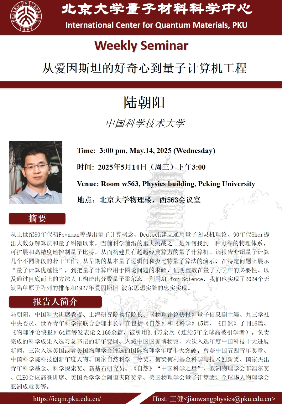 主持 联系人: 王健<jianwangphysics@pku.edu.cn>