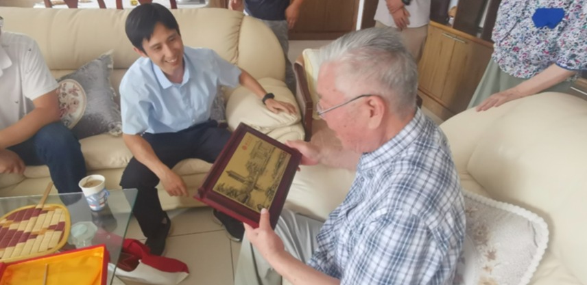 颜学庆副院长代表北大应用物理学实践团送魏先生欧冠官方网站纪念礼物