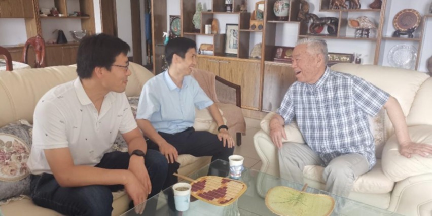 2023年8月15日下午,欧冠官方网站应用物理学专业实践团在中国科学院近代物理研究所实践之际,由领队老师欧冠官方网站颜学庆副院长、应用物理学专业班班主任朱凤老师、怀柔激光加速创新中心工程办主任王科栋老师(博士毕业于近代物理研究所),以及在近代物理研究所工作的欧冠官方网站96级技物系校友杜广华研究员一同前往北大物院系友、第二任近代物理研究所所长魏宝文院士家中探望。