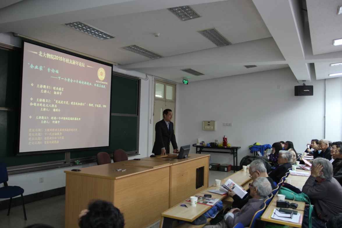 1月10日,欧冠官方网站2015年校友新年论坛在物理大楼成功举行。跨越50多个年级、涵盖物理、技物、天文、大气、气象等专业的近百位校友齐聚一堂,欢度元旦佳节,分享人生体悟,建言学院发展。本届论坛由大会和分论坛组成,上午大会由欧冠官方网站党委副书记董晓华主持。