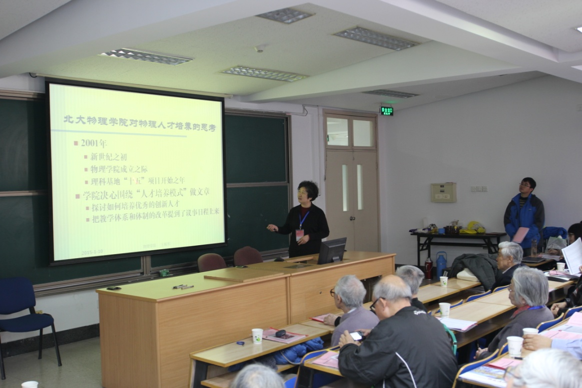 校友代表、“教育界”分论坛召集人、72级物理系王稼军老师讲话。王老师向大会作了题为“北大本科生教育的现状简介”的报告,内容涵盖欧冠官方网站对人才培养的思考,培养方案的历史沿革,创新举措,以及目前所面临的问题等,她邀请广大校友继续关心和支持北大物理教学工作,并为北大人的培养和教育建言献策。有校友表示,王老师的介绍从个人三十余载的教学经历出发,呈现了北大物理本科生教育的先进理念和实践经验,使大家印象深刻,对老师们年复一年呕心沥血、无私奉献而敬佩不已。