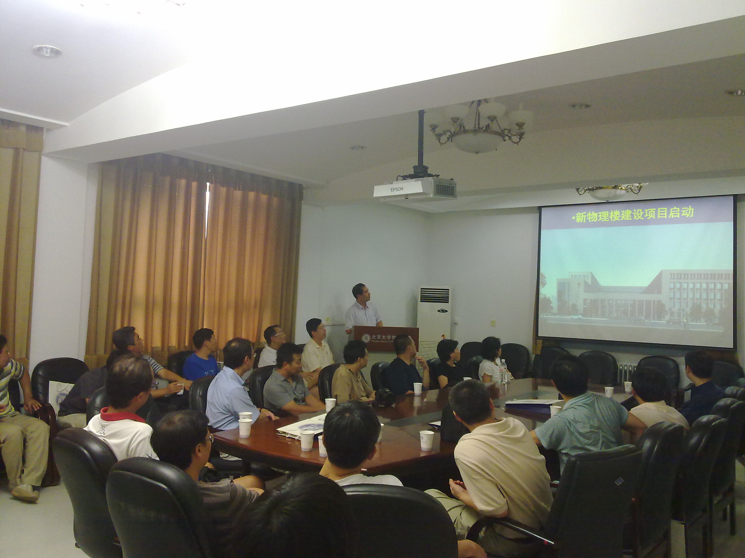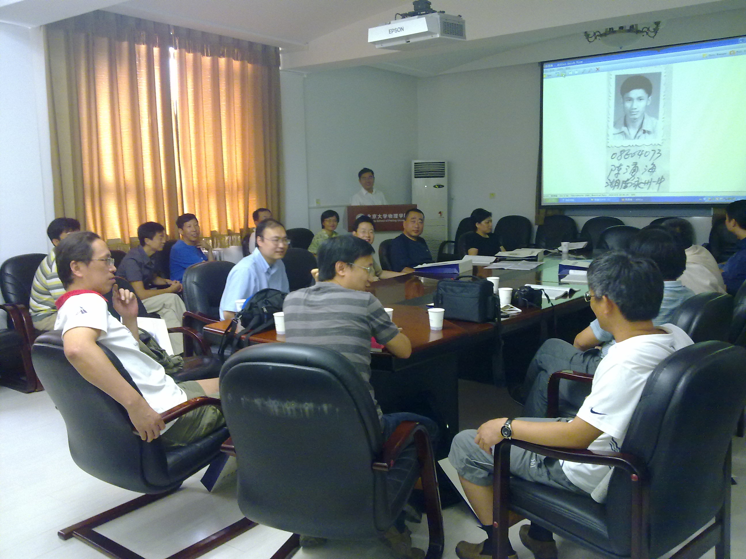 午餐结束后,校友们漫步校园。参观了重建后的36号宿舍楼、修缮过的学一食堂、气势恢宏的百年大讲堂和焕然一新的图书馆新馆。大家在回忆旧日校园风采的同时,不禁赞叹二十年来燕园发展之快,变化之大。随后,校友们在物理楼听取了学院副院长龚旗煌的学院情况介绍。会上,龚老师从多个角度对学院的现状进行介绍,包括学术单位、教师队伍、学生规模、科研水平、基础建设等,内容全面,重点突出,使校友对学院的基本情况和发展规划有了较为深入的了解。会后,校友在龚老师的陪同下参观了学院基础物理实验室、电镜实验室和光学实验室,并就各自关心的问题进行了深入交流。