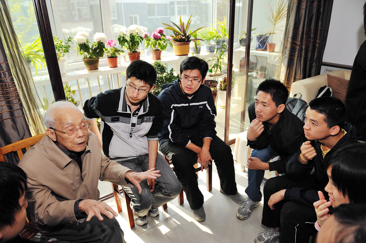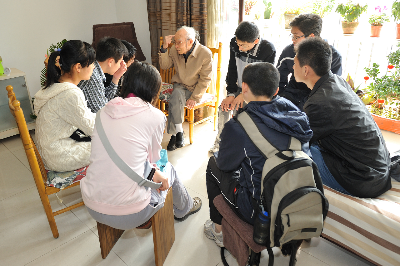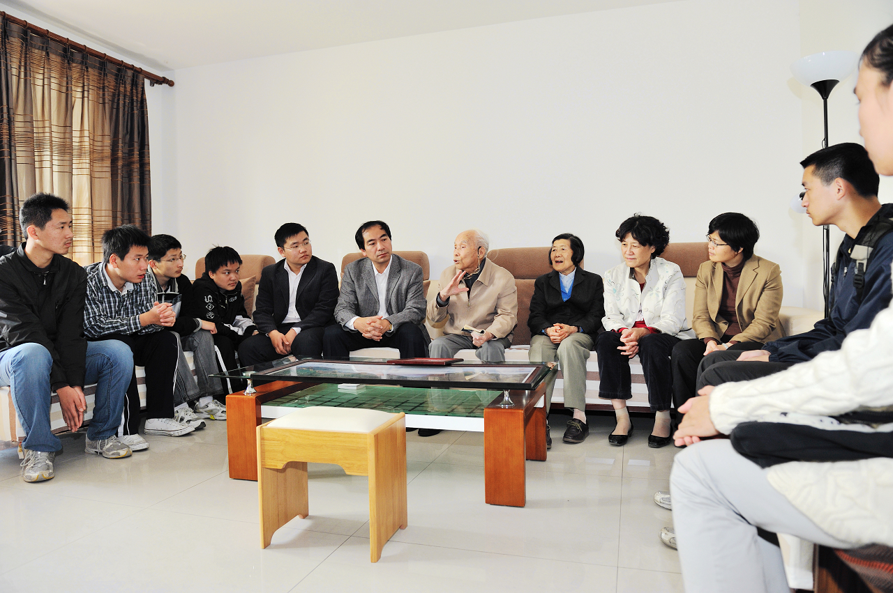 陈院士与学生们围坐在一起 |