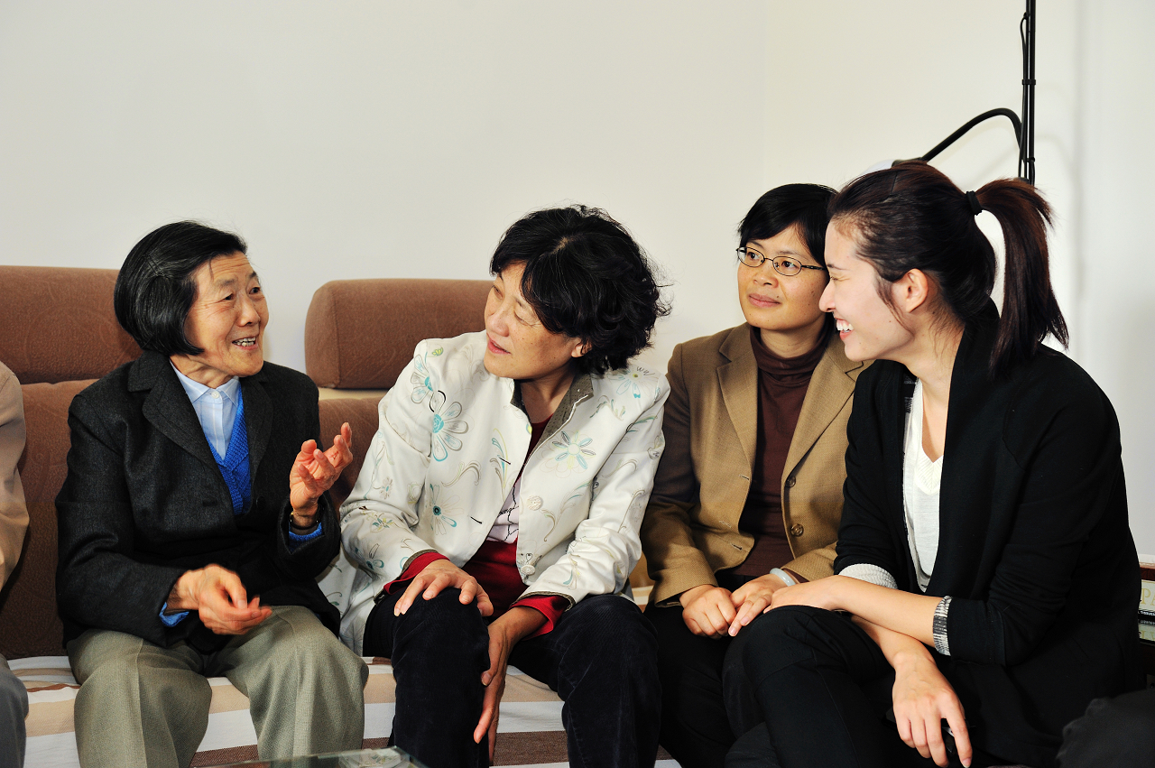 常菊芳女士与老师们在一起 |