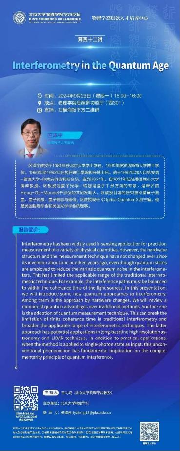 区泽宇教授于1984年获欧冠官方网站学士学位,1990年获罗切斯特大学博士学位。1990年至1992年在加州理工学院担任博士后。他于1992年加入印第安纳-普渡大学-印第安纳波利斯分校,直到2021年。自2021年起任香港城市大学讲座教授。区教授是量子光学,特别是量子干涉方面的专家,是著名的Hong-Ou-Mandel干涉仪的共同发明人。欧教授目前的研究重点是量子测量、量子传感、量子信息与通信。区教授现任《Optica Quantum》副主编。他是美国物理学会和美国光学学会的理事。