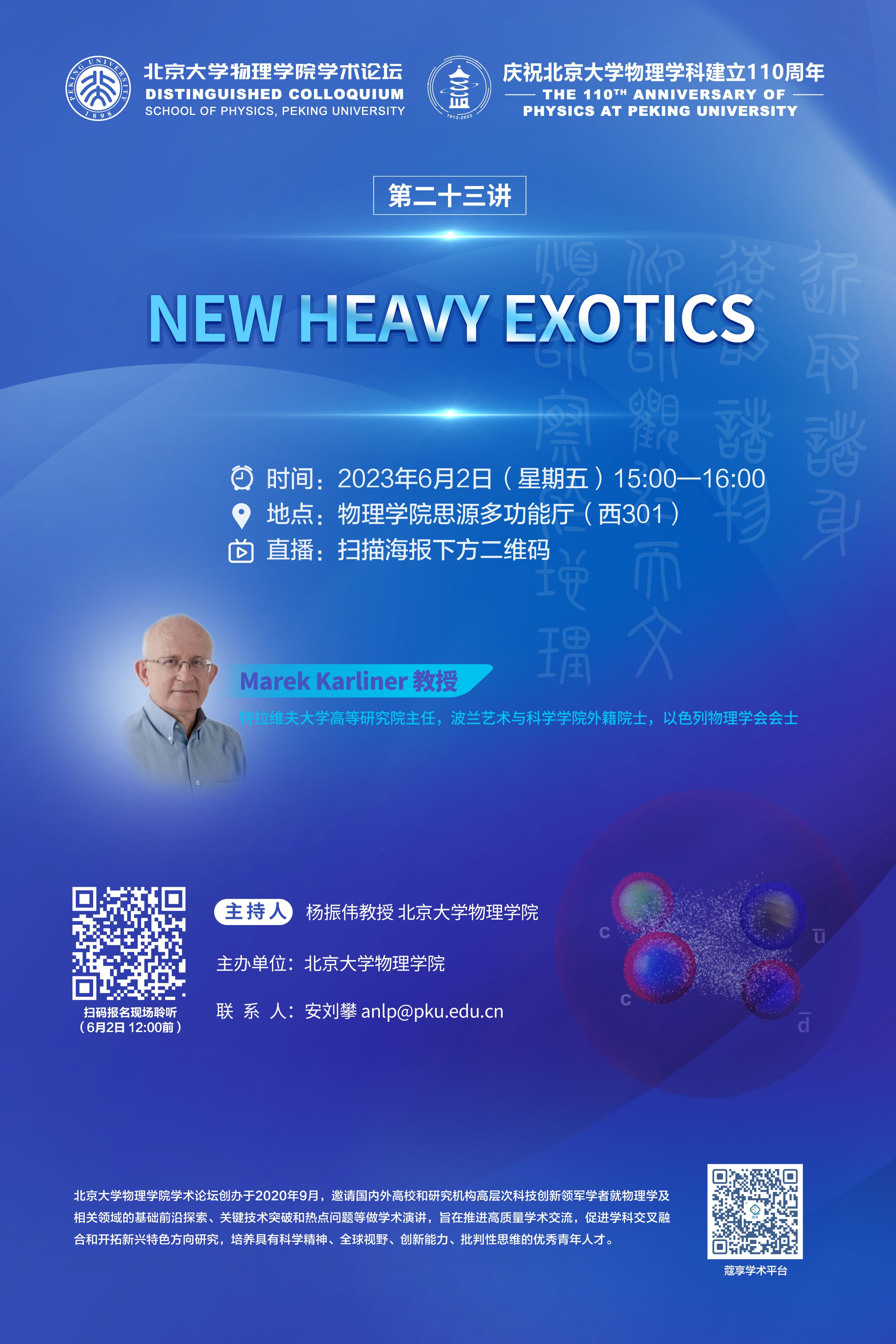 Marek Karliner教授任职于以色列特拉维夫大学,是粒子物理理论专家;近期成果包括对多种奇特强子态,即四夸克态和五夸克态性质的理论预言,其结果先后被欧洲核子研究中心和美国、中国、日本的多个大型实验验证。Marek Karliner教授现任特拉维夫大学粒子和场理论物理“Edouard and Francoise Jaupart”讲席教授;自2015起,担任特拉维夫大学高等研究院主任;2017年,当选为波兰艺术与科学学院外籍院士;自2021年起,担任以色列高能物理委员会主席和欧洲核子研究中心的以色列科学代表,并当选波兰华沙大学监事会成员。2023年4月,当选以色列物理学会会士。