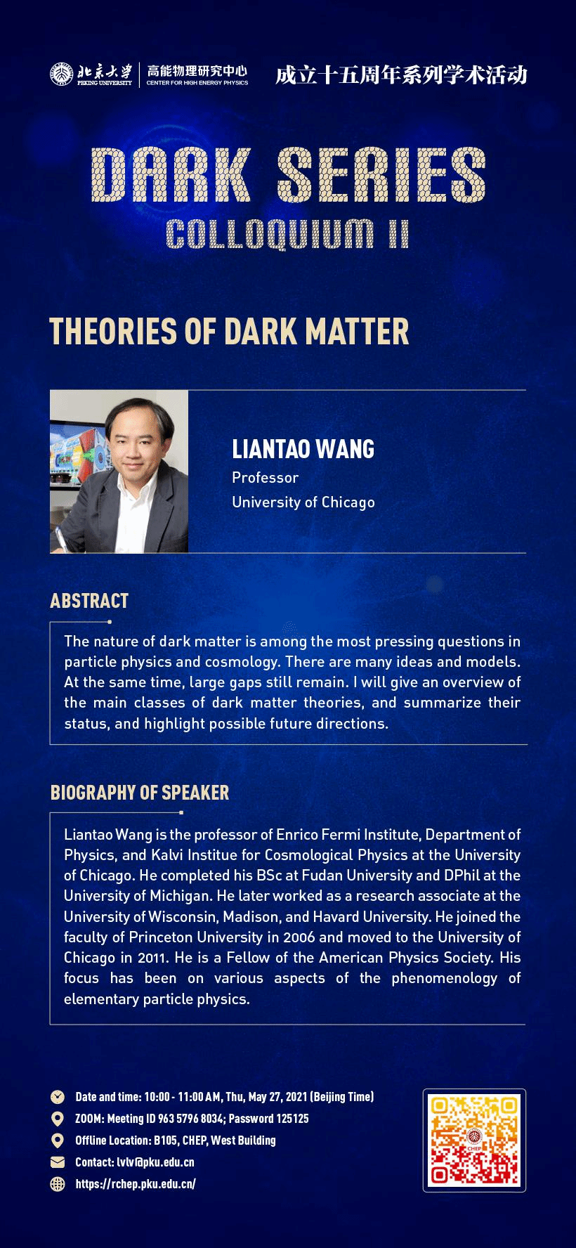 主讲人简介: Liantao Wang is the professor of Enrico Fermi Institute, Department of Physics, and Kalvi Institue for Cosmological Physics at the University of Chicago. He completed his BSc at Fudan University and DPhil at the University of Michigan. He later worked as a research associate at the University of Wisconsin, Madison, and Havard University. He joined the faculty of Princeton University in 2006 and moved to the University of Chicago in 2011. He is a Fellow of the American Physics Society. His focus has been on various aspects of the phenomenology of elementary particle physics.
