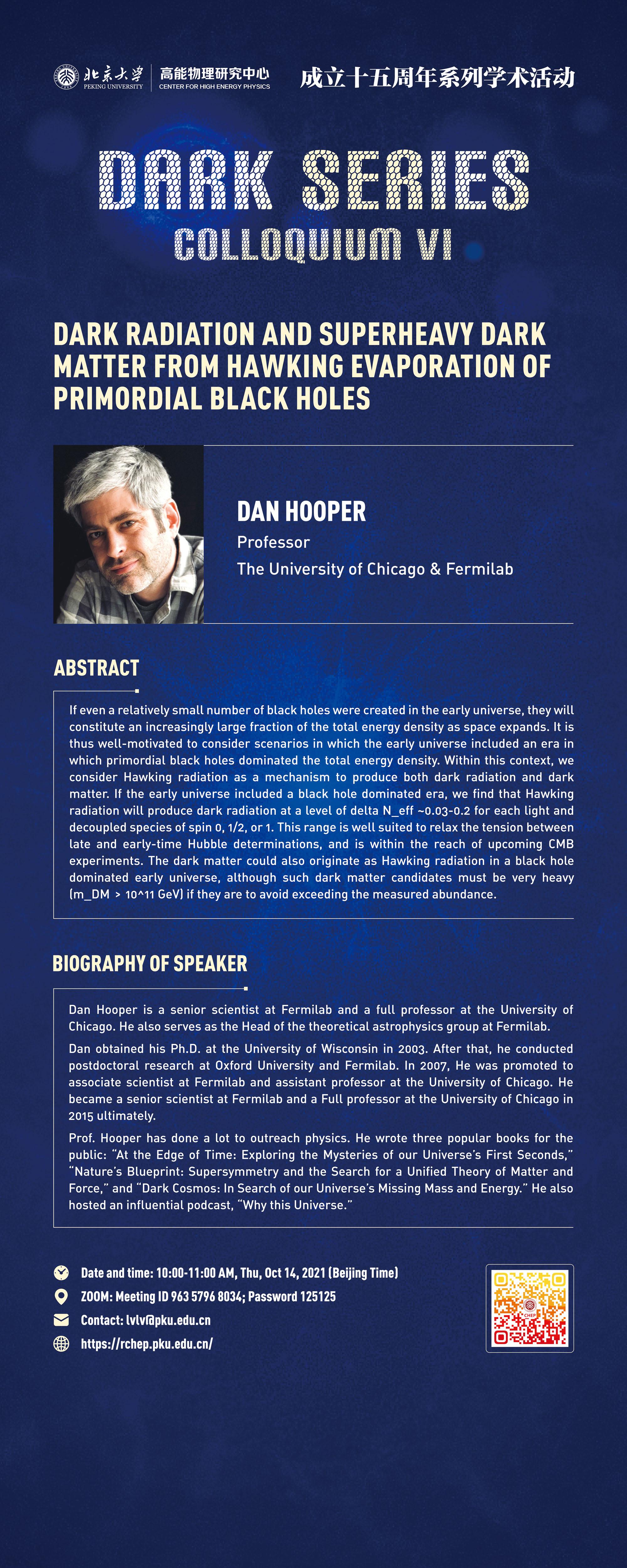 主讲人: Prof. Dan Hooper (University of Chicago & Fermilab)