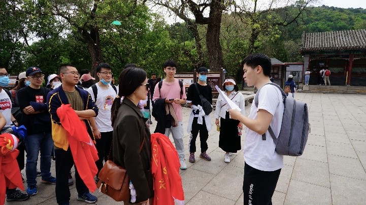 上午十点,四十余名党员和团员有组织地到达双清别墅所在的香山公园。在东门前广场党团员举行了党史知识竞赛,由重离子所第一党支部支书蒋耀湘同学主持。