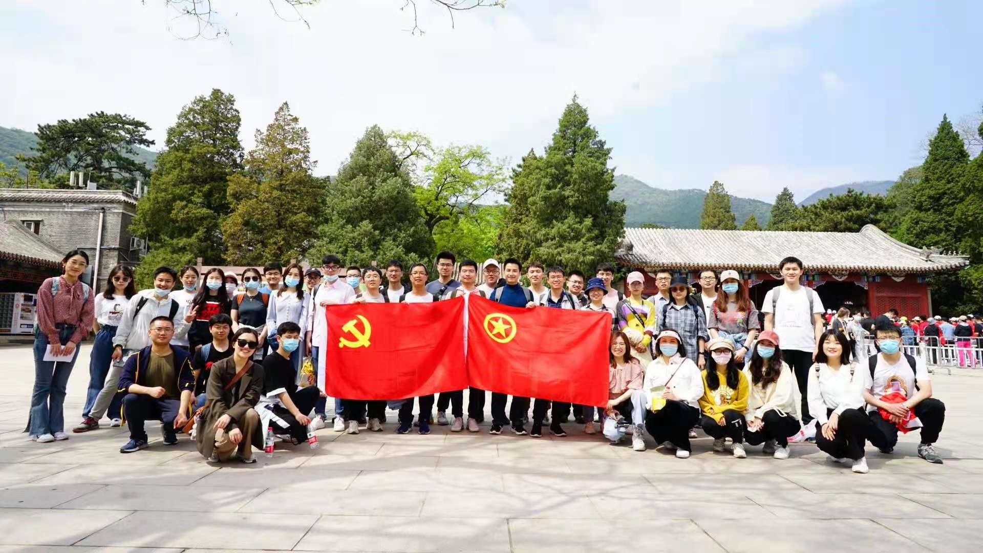 党员和团员在香山公园东门处合影