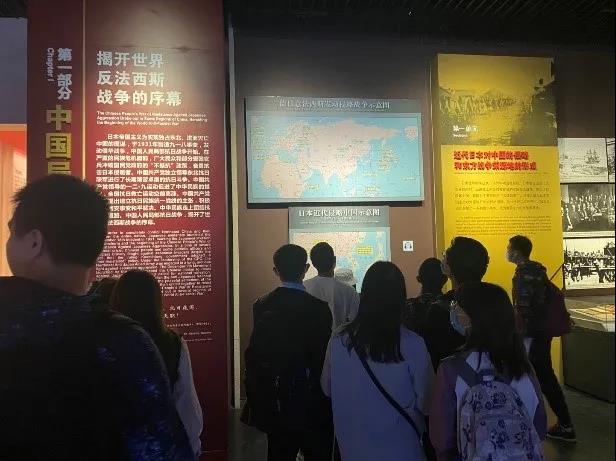 随后,大家怀着崇敬而又激动的心情到达了位于宛平城的抗日战争纪念馆。馆内详实的史料记录和历史文物深深吸引了每位同学的目光。一幅幅旧照片、一件件抗战文物、一段段饱含历史厚重感的介绍,沉重而深刻地冲击着每位同学的内心。在纪念馆的参观中,同学们深刻感受到了抗日战争中伟大而不屈的中国人民所付出的惨烈牺牲。回望那段饱受战火洗礼的沧桑岁月,大家更加能够体会到革命先辈们在民族危难之际进行艰苦卓绝斗争的勇敢与坚定,更加深刻地理解了 “天下兴亡,匹夫有责“这句话的时代含义。