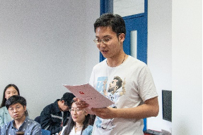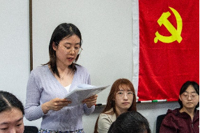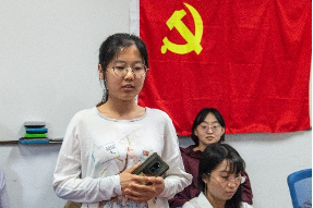 主题党日分享结束后,支部召开了本学期的第二次党员大会,进行党员发展工作,会议由支部书记时铭同志主持。会议严格按照议程,首先由时铭同志报告到会人数,到场党员17人,超过支部应到会有表决权人数的半数,明确可以召开会议;之后,分别进行了任阳泽通知的转正工作,和接收王卓群、张璐两位同志为预备党员的工作。三位同学客观评价自身情况,并表示要坚持理论与实践相结合的原则,加强党性修养,努力做好本身工作,尽职尽责服务同学。通过无记名投票表决,大会同意任阳泽同志按期转为正式党员,同意接收张璐和王卓群同志为预备党员,希望他们能够在后续实践中锐意进取,改正不足,发挥先锋模范带头作用。三位同志纷纷表示,在今后的学习工作中,他们将加强理论知识学习,明确目标,严格要求自己,努力改正自身不足,积极向优秀共产党员学习。最后,张璐和王卓群同志面向党旗,庄严宣誓入党誓词。