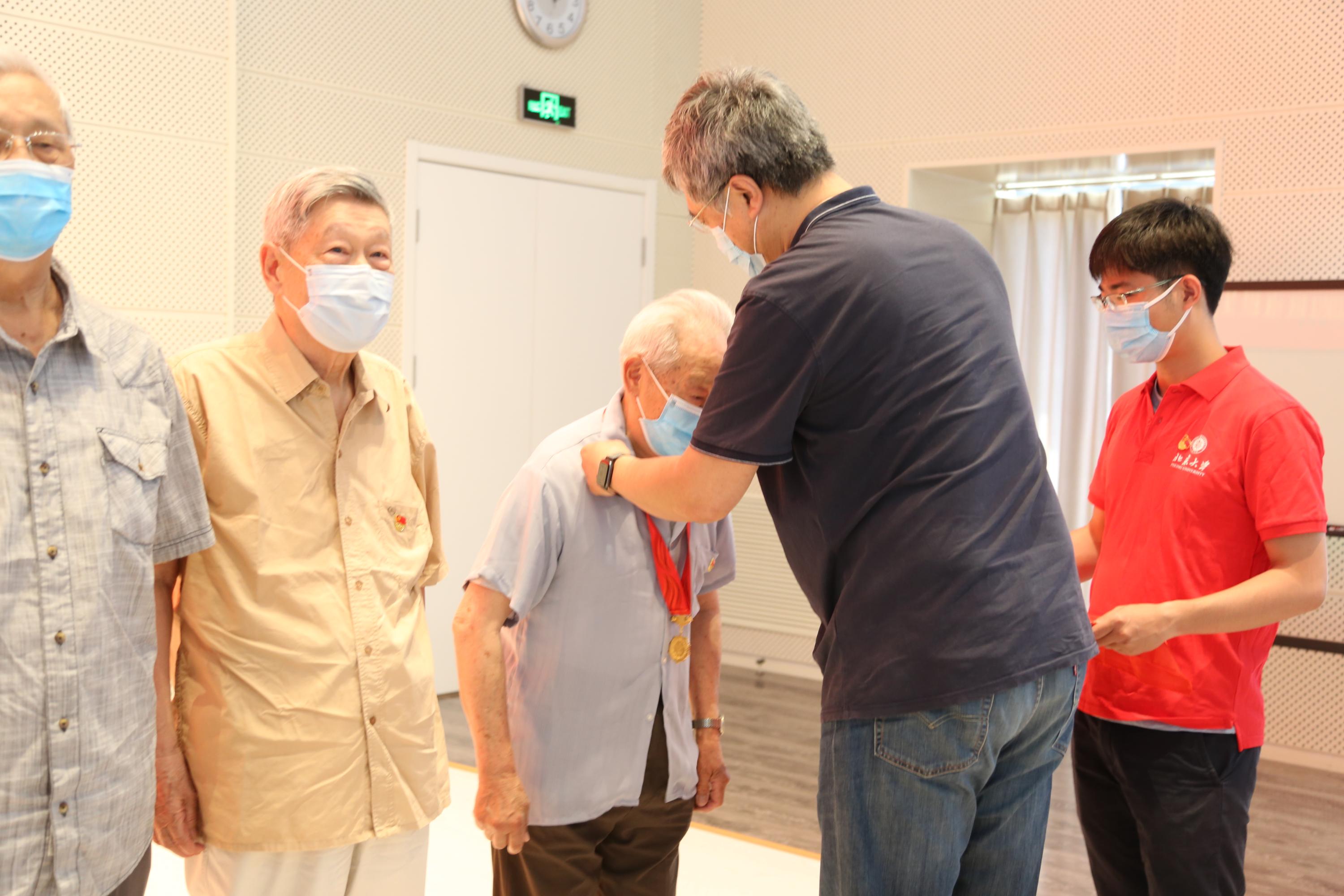 随后,杨金波、高原宁为到会的每一位老党员代表颁发“光荣在党50年”纪念章,代表学院全体师生向他们致以最崇高的敬意和最由衷的祝贺。