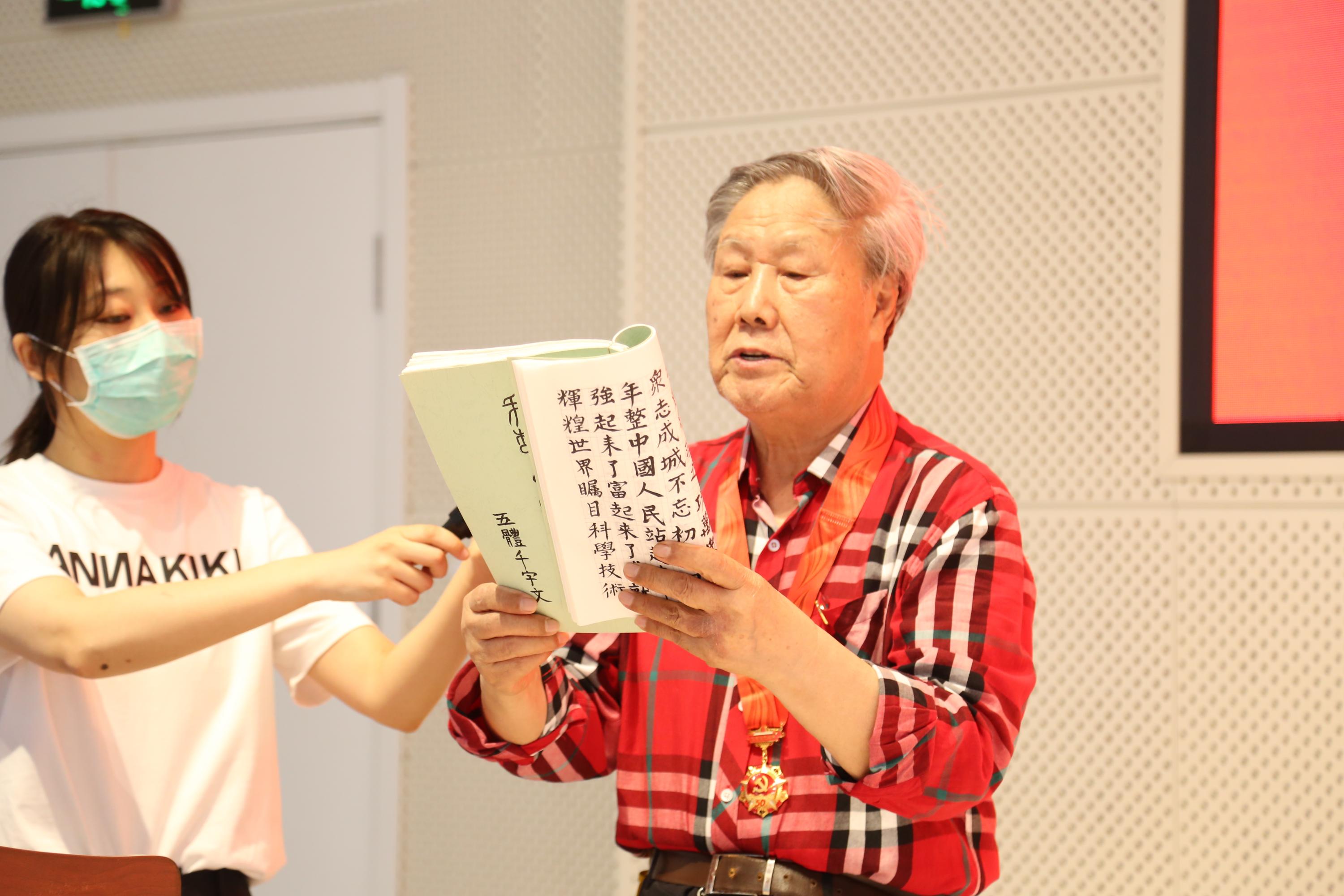 光学离退休党支部书记刘继周同志代表获颁纪念章的老党员发言。他表示佩戴上纪念章,心情无比激动。他向校院党委对老党员的关心和爱护表达了谢意,分享了通过学习领悟《习近平谈治国理政》,将党的百年征程和辉煌成就构思为篆刻千字文的心得体会,用原创作品生动诠释了老党员学习不止、奋斗不息的精神。