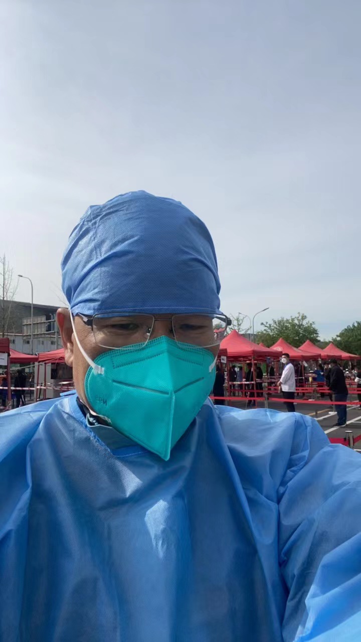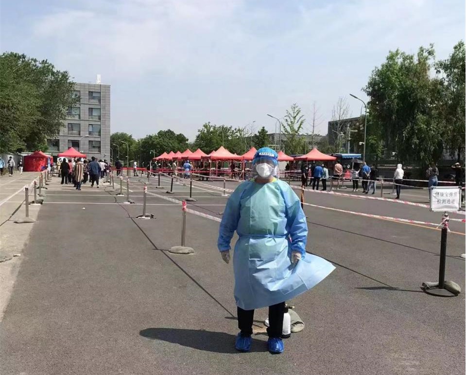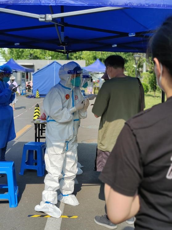 郑涛老师在炎炎夏日下开展核酸志愿者工作