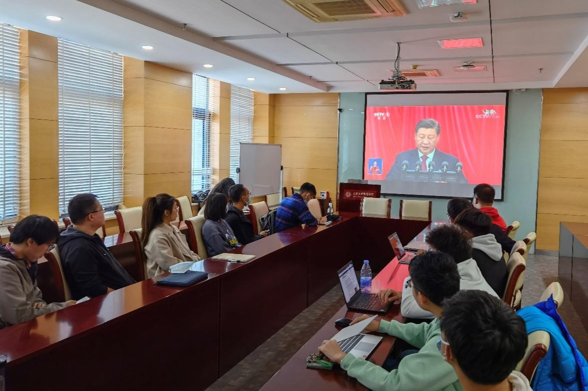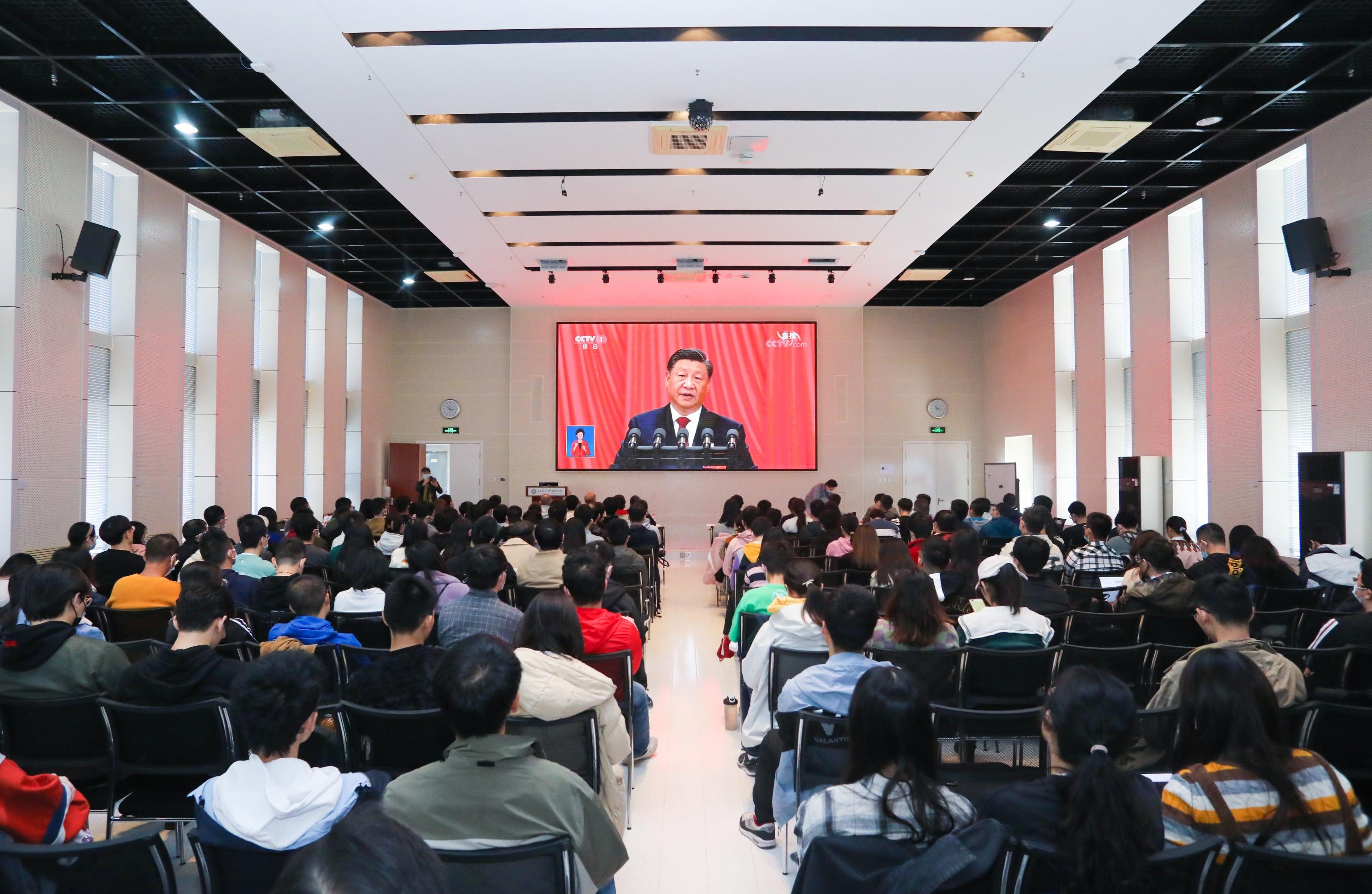 欧冠官方网站党政班子成员、教工党支部、学生党支部、师生代表集体收看了开幕会现场直播。