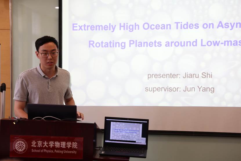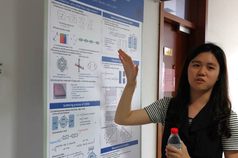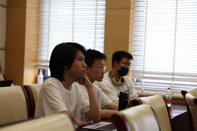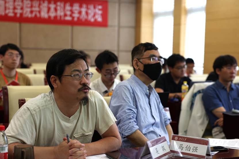 随后,主持人宣读了本届论坛的评审规则和注意事项,论坛展示汇报正式开始。杨天骅、邹子航、徐栩涛、石家儒、欧阳霄宇、程谋阳、王洛涵七位本科生依次上场,将目前研究采取的思路和取得的科研成果向现场评委、同学做了汇报,并接受了评委老师的提问。中场休息的茶歇环节,林织星同学通过墙报展示和讲解了自己的成果,评委老师与观摩同学纷纷提问,热切交流。