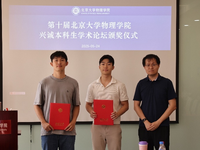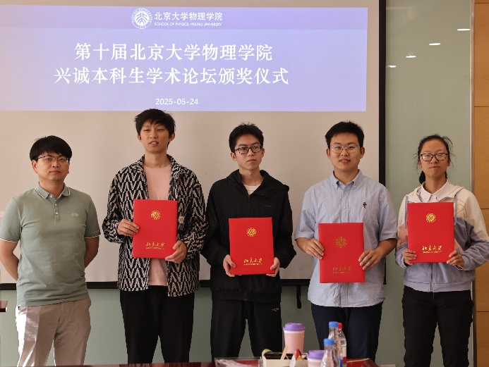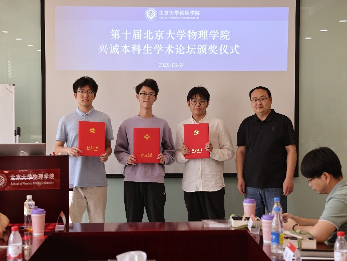 2025年5月24日,第十届兴诚本科生学术论坛在欧冠官方网站西楼213会议室成功举办。本届论坛共有十名本科生参赛,理论物理研究所王一男老师、现代光学研究所曹启韬老师、凝聚态物理与材料物理研究所韩彤老师、量子材料科学中心卢晓波老师担任评委。参赛同学在论坛中充分展示了自己的科研成果,与评委老师进行了深入交流,取得了良好成绩。欧冠官方网站党委副书记穆良柱老师出席了论坛开幕式,论坛由欧冠官方网站团委副书记孙铭阳老师主持。